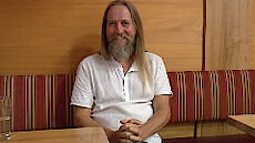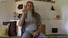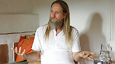 Amrit gibt nicht oft Satsang und lebt ein einfaches Leben in Italien, arbeitet in einer Bar und kleidet Leute für Canyoning an, checkt Leute im Hotel ein. Im Satsang ist Amrit einfach hier; Satsang ist eine Zusammenarbeit; es ist oft ein Missverständnis, dass mit demjenigen, der auf dem Stuhl sitzt, etwas Außergewöhnliches ist, die Situation ist außergewöhnlich, der Stuhl ist das Geheimnis. Du setzt dich hin ohne Plan, du erlaubst dir selbst, das zu sein, was du bist, ganz einfach. Wir tun so oft als ob wir etwas wüssten. Der Name Amrit, Nektar kommt von Osho. Amrit ist wirklich ein einfacher Kerl. Osho ist ein Teil von Amrit, so wie jeder; Amrit hat eine ewige Dankbarkeit gegenüber Osho, es war das erste Mal, dass ihn jemanden wirklich gesehen hat. Es gab auch Streit mit Osho, Osho selbst hat es gesagt, irgendwann musst du den Buddha töten. Gibt es für dich nur Eins? Etwas guckt jetzt, wenn man Eins sagt, dann muss es auch zwei geben, da gibt es nicht mal Eins, es ist sinnlos darüber zu reden; einfach hier jetzt still sein. Ein Interview ohne Wörter ist aber irgendwie doof, ab und zu macht man auch doofe Sachen. Jetzt ist Amrit verliebt in Aquaponic: Fische und Pflanzen leben zusammen in einer Symbiose und Amrit möchte so eine Anlage anlegen. Amrit immer am Spielen; immer hinter sich selbst her, er hat keine andere Wahl, man kann nur tun, was man tut. Amrit hat keine Idee, was redet und das kommt nicht durch das Glas Rotwein; das Ich, was ist das, von wo kommt der Impuls zu reden? Um etwas beurteilen zu können muss man einen Punkt haben von, wo es aus geht, noch nicht mal das hat er. Du? Was meinst du damit? Wenn er Devasetu ansieht, weiß er noch nicht mal, ob er der Interviewer ist oder umgekehrt und weiß sicher, dass es das gleiche für Devasetu ist, höchstens tust du so, als ob es nicht so ist, aber wenn du ganz ehrlich bist, weißt du das; es ist ein totales Mysterium was hier passiert. Je mehr der Mut da ist, alle Ideen loszulassen, ist er immer in dem Wunder. Ist alles Gnade? Das große Dach, was letztes Jahr von Amrit in Italien gebaut wurde, ist heute nicht mehr da; es wird immer schwieriger Probleme zu machen, wo ist das Problem, es ist so befreiend, es ist eben einfach anders geworden. In diesem Moment, wo er einfach still ist, ist alles okay; um es nicht okay zu machen, muss ich erst eine Geschichte davon machen. Alles hat irgendwann ein Ende, nicht so wichtig, ob es etwas früher kommt. Es ist beides hier, er kann in eine Geschichte reingehen und beobachten, was ist außerhalb der Geschichte, einfach, weil es möglich ist. Amrit ist ein Teil einer Genossenschaft und zusammen wird ein Restaurant betreut, es wird auch Canyoning angeboten, zu Fuß, über einen Wasserfall abseilen, zusammen mit drei Alpin-Guides, es gibt ca.100 Schluchten. In den Schluchten brauchen die Menschen nicht in den Satsang, es gibt da keine Gedanken mehr, alles ist so anders da, das Wasser fließt alles weg, dein Verstand hat da nichts zu tun. Durch die Zusammenarbeit mit Schleglberg gibt es jetzt dort ein kleines Hotel, es entsteht ein Seminarraum. Man kann für Stunden oder Tage buchen, einzeln oder in der Gruppe, Amrit ist anwesend. Immer wenn die Aufmerksamkeit, auf das ist, ist immer diese gleiche Qualität, Frischheit, Stille. Amrit nennt es Treffen mit Freunden, der Begriff Satsang kam von außen. Amrit hat nichts, was du nicht hast, er ist kein Therapeut oder Guru oder Meister. Er ist einfach Amrit, der sich in das Leben verliebt hat und einfach nicht mehr anders werden will als er ist, das ist so süß. Es ist so natürlich, dies anderen auch zu sagen, die es vergessen haben, das sie okay sind. Im Schleglberghof bietet Amrit ein Retreat (27.-29.10.17) an,...#Mehr...# der Ablauf steht auf dem Papier, es ist aber völlig offen, was passiert. Am Anfang wollte er nichts haben, weil er nichts gibt, aber die andere hatten das Gefühl, dass eine offene Rechnung geblieben ist, so wird jetzt gespendet. In dem Moment, wo deine Aufmerksamkeit auf Jetzt ist, dann ist es fast unmöglich zu reden, weil alles sich auflöst, die Gedanken passen irgendwie nicht ins Jetzt. Ohne Gedanken, Konzepte, Etikette löst alles sich auf, so wie jetzt. Amrit ist ein alter Rocker, on the road wird viel gelacht, da wird das Leben nicht so ernst genommen und wenn man dann noch hineinschaut und da ist niemand, da kann man ja nur lachen; wie es immer auch geht, wir kommen hier nicht lebend raus, wie kann man das dann noch so ernst nehmen? Die Fragen und die Antworten sind nur eine Entschuldigung, um miteinander zu sein, ein bisschen Lärm machen. Spürst du, das du genau das bist, was ich bin? Da ist keiner drin und keiner draußen. Ja, und die Individualität geht nicht verloren, das macht es so lebendig, es ist Platz für alles da, auch für Canyoning. Wer erst in der Schlucht nervös wird, auf einer Linie zu hängen im Nichts, da unter ist was, im Satsang-Nichts fällt man in alle Ewigkeit, im Canyoning fällt man nur kurz; 25% Verlust in dem Sport ist die Norm. Es gibt nur Kinderpreise auch für Erwachsene. Das ganze Leben ist für Amrit immer mehr ein Spiel, wir wohnen auf so einen wunderschönen Planet, es macht ihn traurig, wenn eine ganze Gruppe es bremsen will, und freut sich und hat zur gleichen Zeit stark das Gefühl, das Spiel ist vorbei, es gibt immer mehr Leuten, die sehen, dass es ein altes Spiel ist. In kurzer Zeit können ganz viele Veränderungen entstehen, weil, wenn es richtig auseinanderfällt, können wir nicht mehr über Morgen philosophieren und wir sind alle im Hier und Jetzt. Devasetu sagt, hier und jetzt ist Fülle, Frieden, Stille und Genuss, mit dir zu sein, „gleichweis“ antwortet Amrit, ein neues Wort.