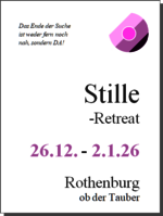 Stille-Gruppe: gemeinsamen still Sein, dem gemeinsamen Eintauchen ins Göttliche, in dem wir uns der transformativen Kraft des Selbst überlassen, immer montags von 20 bis 21 Uhr, späteres Erscheinen u. früheres Verlassen sind okay, organisiert von Stefanie. Mehr Ínfo u. der Link um dabei zu sein über diese Telegram-Gruppe hier klicken…