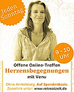 Online-"Herzraum" mit Venu jeden Sonntag von 9 bis 10 Uhr , kostenloser Zoom-Zugang u. mehr Info auf der Website www.retreatzeit.de, ohne Anmeldung u. auf Spendenbasis